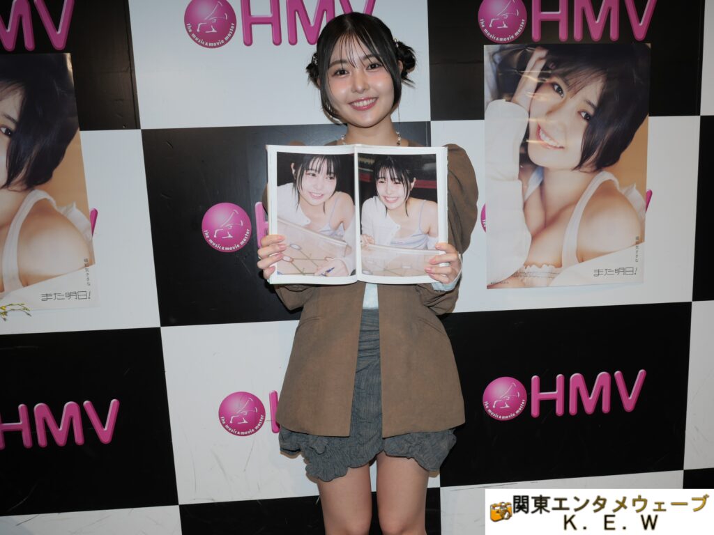 本作のタイトルについては、「“また明日”っていう言葉がめちゃくちゃ好きで。子供の頃は学校で“また明日”って毎日言ってたじゃないですか。大人になってからは“また明日”って言う機会があまりないので、ファンの方とかともそうなんですけど、“また明日”で解散できるときってすごくうれしいんですよ。大人になってから“また明日”ってすごくいい言葉だって思うので、大人ならではの感性というか、“また明日”がいい言葉と思える年齢っていうのがすごくうれしいので、25歳の私をありのまま全てぎゅぎゅっと詰めて入れたので、ファンの方が手に取っていただければ、開いたらいつでも毎日会えちゃうよという感じの意味で“また明日”と付けました」と説明した。